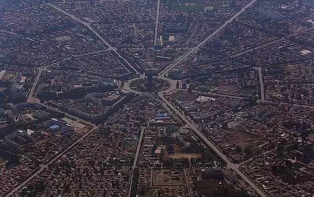 从高空俯瞰特克斯,整座城市呈现放射状的4环,64条街路路相通,犹如一张摊开的大型八卦图。