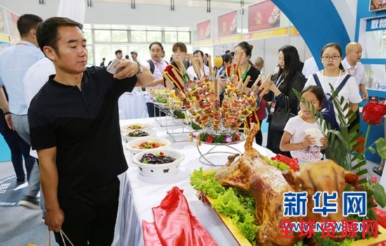 由盐池滩羊肉制作的烤全羊吸引了参会者的关注。刘海燕 摄