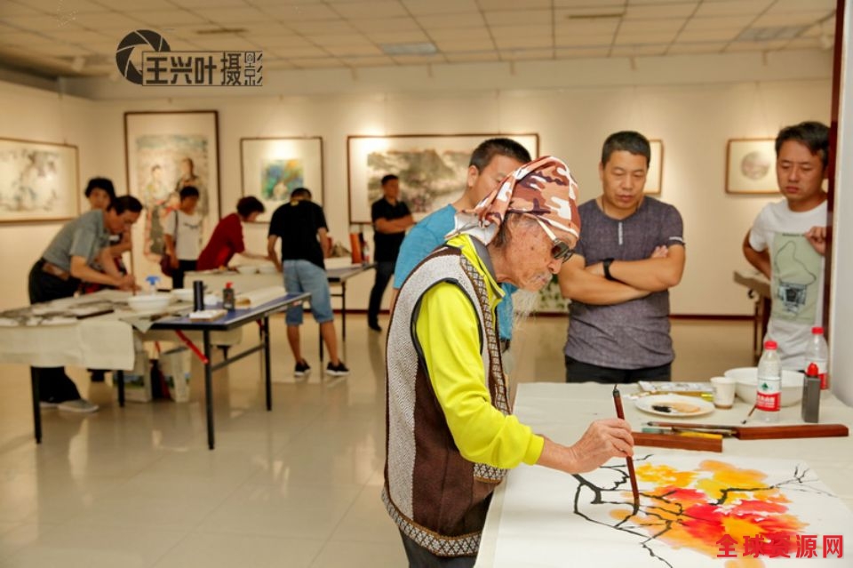 86岁的张德正老先生现场表演超前风格的具有梵高特色的彩墨画
