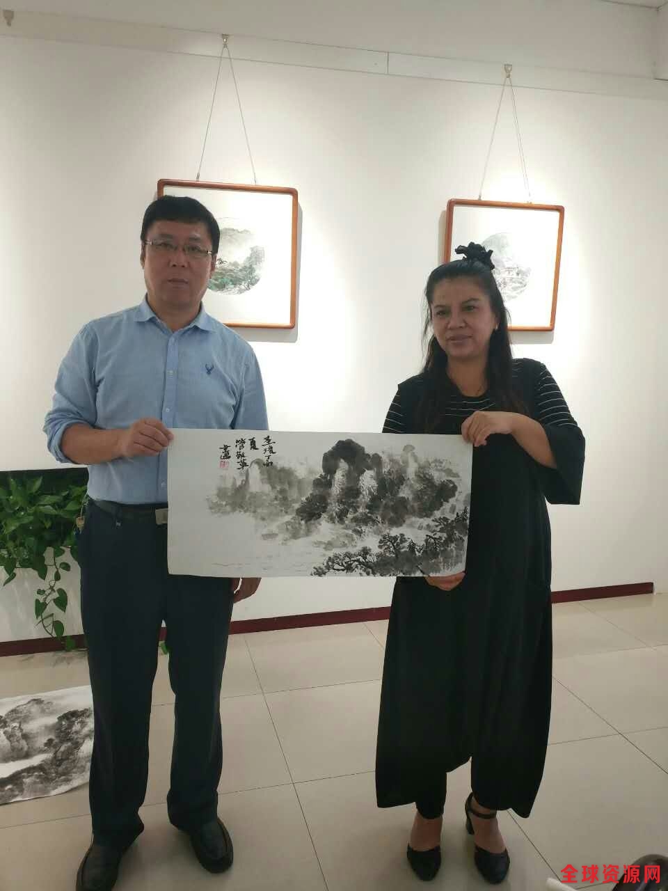 画家管敬革现场创作的水墨画被保定台办主任赵彦平看好,评为具有文学灵气的画家