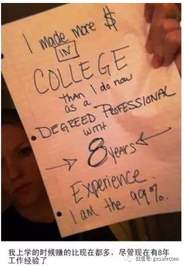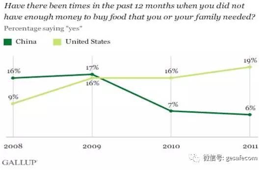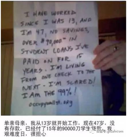 图上那2张纸是美国的占领华尔街运动的参与者们写的为什么参与这个运动,下面是盖洛普的民意调查结果表明美国贫困率大幅度上升,中国的贫困率显著下降。