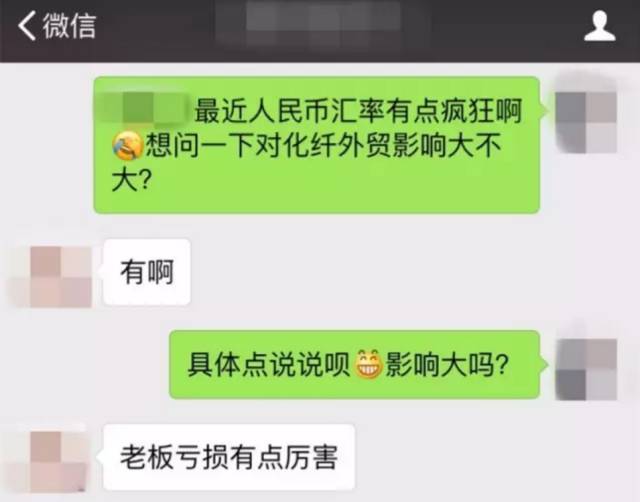 汇率的不断飙升更是让从事外贸工作的纺织、化纤老板如坐针毡,稍有不慎可能就“赔本赚吆喝”!有从事涤丝、切片相关贸易业务的业内人士说道:我们前面接单汇率都是6.85的样子,现在6.58了,按一个高柜30000USD计算,损失8100,每吨损失340元左右。但是明知道亏本还是要做,需要保住客户啊!面料老板甚至更惨…