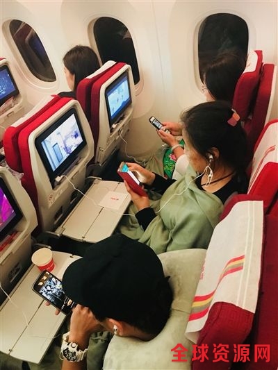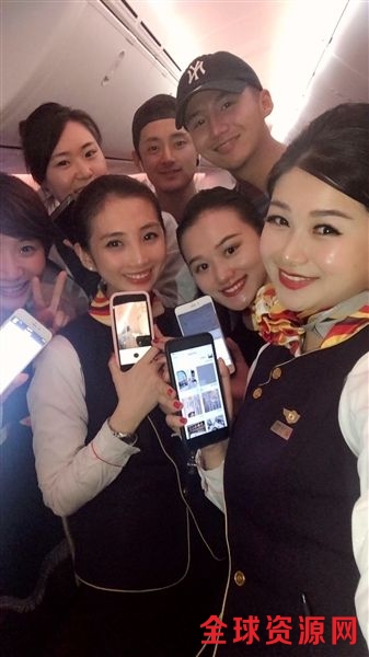 空姐和乘客开启手机记录飞机上使用手机历史一刻