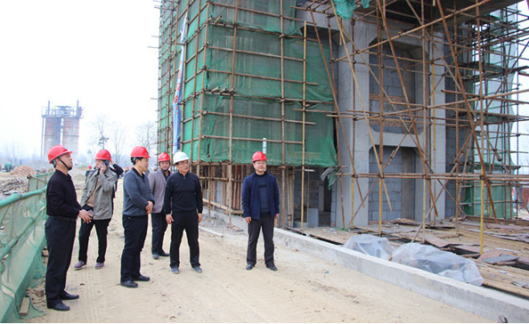 图为濉溪县水务局局长彭兴艾陪同市水务局徐涛局长调研督查濉溪县水利重点工程建设情况
