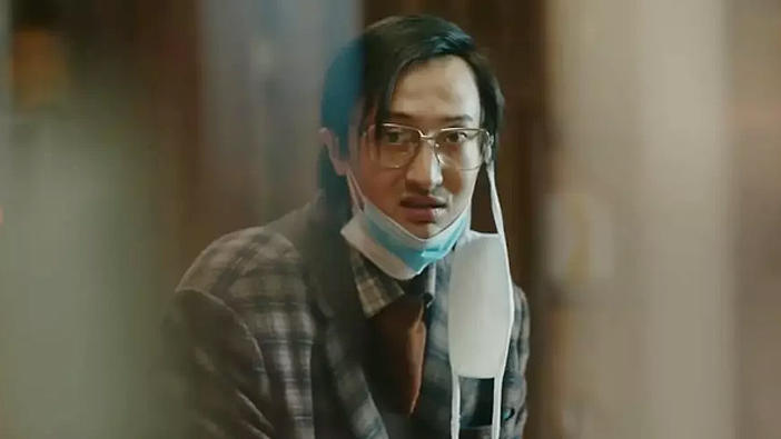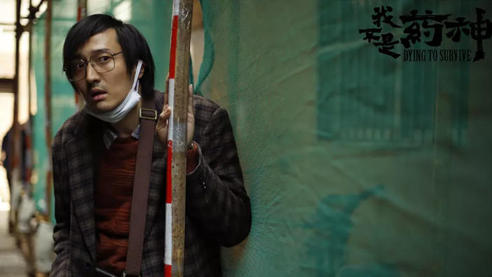 片段中,王传君饰演的吕受益是一个身患慢粒白血病的病人,身体佝偻,面色蜡黄,深陷的眼窝下,紧紧戴着3层口罩,因为支付不起4万一盒的正版药,在一家卖印度“保健品”的店里,找到了程勇,求他帮忙走私一种印度仿制药,它和正版药疗效相同,但价格却只要五千。