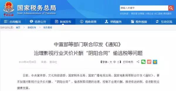 尽管目前只有部分境外媒体进行了相关报道,国家税务总局网站上更未见相关公告,但两个月以来的种种迹象却表明:针对影视圈产业链中乱象的整治,已是势在必行。