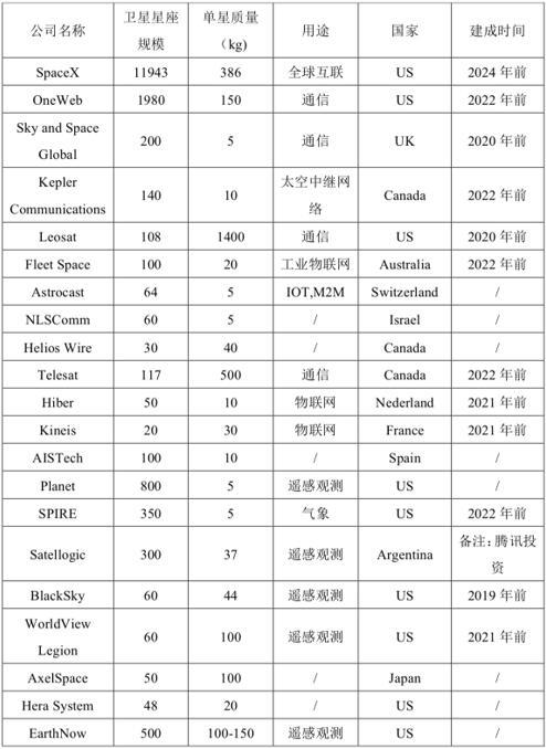 全球部分(不包含中国)已公布的星座计划,source: 千域空天
