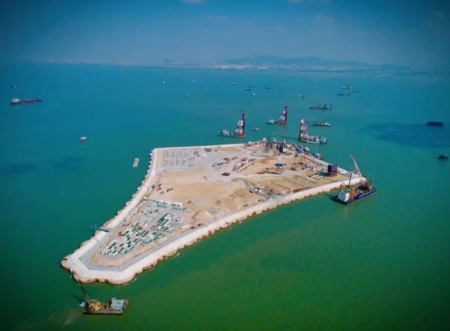 当天,在伶仃洋上,繁忙的航运船与种类繁多的施工船有序航行,风筝状的西人工岛已经“初露芳容”。岛体钢圆筒振沉施工及岛内回填已完成,其面积相当于19个足球场大,由57个直径为28米的钢圆筒构成,每个钢圆筒相当于14层楼高。