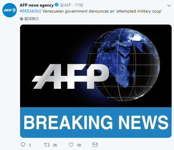 据报道,委内瑞拉反对派领导人胡安·瓜伊多30日声称,他已经开始了推翻总统尼古拉斯·马杜罗的计划“最后阶段”,希望委内瑞拉人民和军方支持他。随后有小股军人参与“政变”。