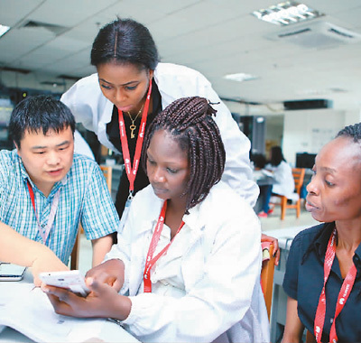 来自尼日利亚的学生在华为未来种子项目实验室学习ICT(信息与通信技术)技术。