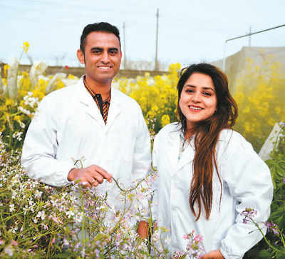 来自巴基斯坦的希拉·坎扎达(右)和古拉姆·穆斯塔法·瓦桑(左)在伊斯兰堡读本科时相识,同样喜欢植物的他们相爱了并决定一同到中国深造,还给自己起了地道的中国名字:林青、马可。两人2010年来到湖北武汉就读研究生,之后又转赴江西农业大学继续读博。