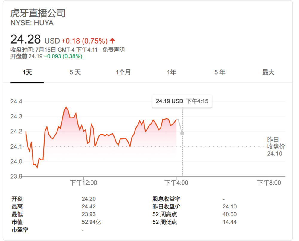 招股书显示,斗鱼股票 IPO 发行价区间为 11.5 美元~14 美元,筹资约 8.592~10.85 亿美元,最高估值为 45.45 亿美元,而按 7 月 16 日股价计算,虎牙的市值为 52.94亿美元。