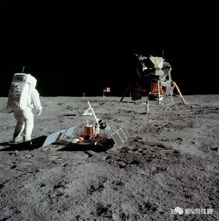 阿波罗11号的登月宇航员正在月面布设被动式地震仪