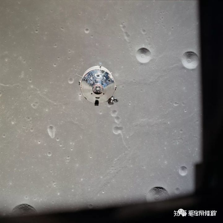 反过来,从登月舱内拍摄的哥伦比亚号指令舱