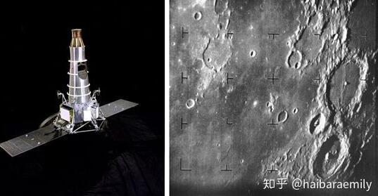 (左)徘徊者7号;(右)徘徊者7号传回的第一张月球表面高清照片