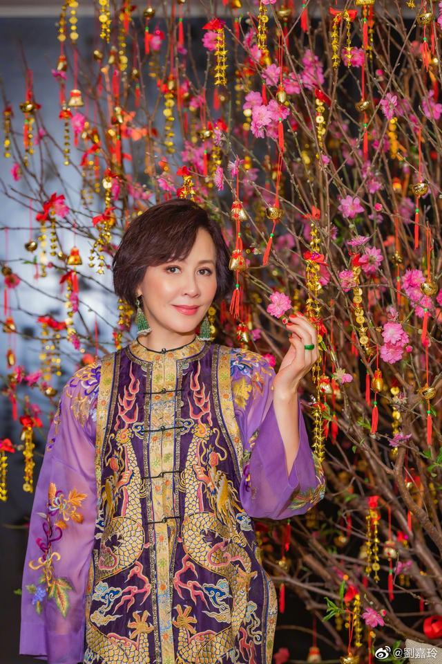 在除夕夜的时候,刘嘉玲也曾晒出一组照片,图中刘嘉玲身穿大红色的套装,站在一棵挂满红包的树前,整个人都显得非常喜庆,脸上也没有一点岁月的痕迹。