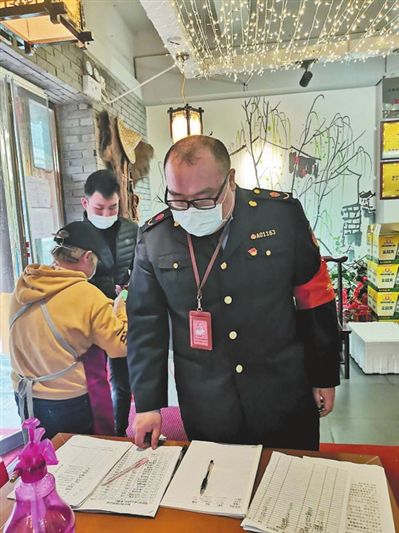 南昌县市场监督管理人员正在对堂食餐馆的防疫工作进行检查。 记者 邹晓华摄