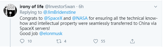 遗憾的是,在NASA局长吉姆·布里登斯廷(Jim Bridenstine)向“天问一号“祝好的帖子下面,也有不少反华水军在攻击NASA,说中国的技术都是“卖国”的NASA送给中国的。