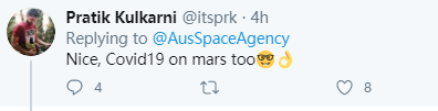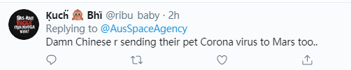 如下图所示,在推特上不少关于中国“天问一号”成功发射的资讯帖文下面,就都能看到这些印度网民在发表诸如“火星要被新冠病毒/中国病毒感染了”“别把新冠病毒带到火星去”之类的言论。