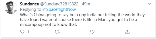 还有一些印度网民,因印度曾成功向火星发射过一个小型探测器,居然写出了中国探索火星是在“抄袭印度”这样既无知又自大的言论。