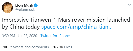 一同被这些反华水军攻击的,还有称赞中国发射成功的美国知名民营太空探索公司SpaceX和电动车品牌特斯拉的老板埃隆·马斯克(Elon Musk)。