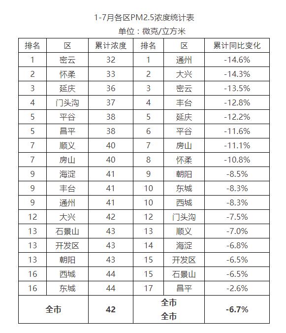 人民网北京8月15日电 (记者 鲍聪颖)记者从北京市生态环境局获悉,今年,北京市空气质量持续改善。1月至7月,北京市4项主要大气污染物累计浓度均保持历史同期最低,其中细颗粒物(PM2.5)累计浓度为42微克/立方米,同比下降6.7%;累计优良天数145天,同比去年增加20天。7月份,北京市PM2.5月均浓度为41微克/立方米。