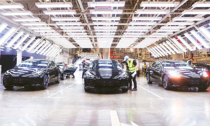 2020年12月,首批出口欧洲的7000多辆中国制造的特斯拉汽车部分抵达比利时泽布吕赫港,销往德国、法国、意大利等国家。美国品牌、中国制造、出口欧洲,特斯拉汽车的例子再次证明,各国互联互通、合作共赢的趋势不可逆转。图为工作人员在特斯拉上海超级工厂内作业。 新华社记者 丁汀/摄