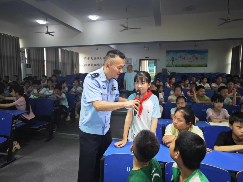 活动现场,民警还精心穿插了趣味问答环节。“小朋友放学路过铁线路要注意什么?”一个个贴近生活的问题抛出后,孩子们纷纷高举小手,争相回答。答对的同学不仅收获了印有铁路安全知识的精美文具,更在热烈的互动中加深了对铁路安全知识的理解。现场气氛热烈,此起彼伏的欢声笑语中,铁路安全防线得以有效筑牢,爱路护路的种子在孩子们心中发芽。