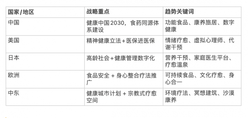 开设“全球健康观察”栏目常态化发布,聚焦:疗愈旅居、功能性食补、数字疗愈趋势;