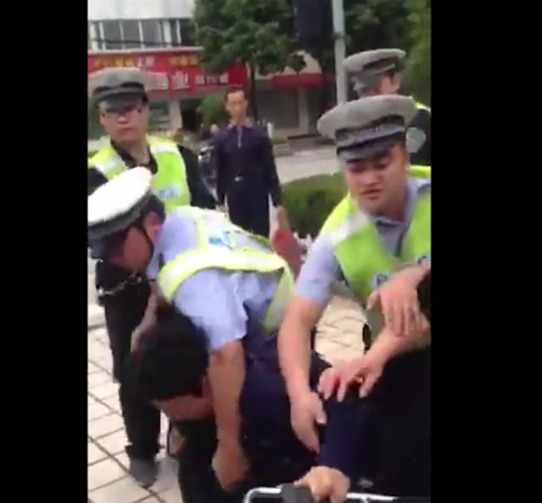 据悉,视频显示,多名警务人员围住一名骑在摩托车上的男子,其中一人要求男子交出证件,但男子拒绝,并称警务人员在“欺负老人”。另一名警务人员随后对男子发出3次警告,要求男子下车,但男子均拒绝配合。男子被多名警务人员联合拖下摩托车,发生肢体剧烈冲突:其间男子倒地,被一名警务人员强制压在地上;男子多次被一警务人员用手臂抱住头部,其倒地后不断挣扎,并一度被两名警务人员分别控制住手脚,躺在地上无法动弹。