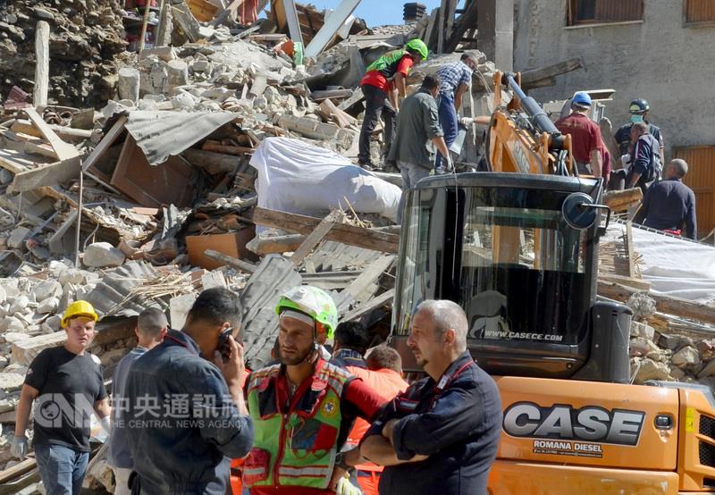 意大利中部24日遭强震重创,25日死亡人数增至250人,救难人员持续搜寻罹难者遗体。(档案照片/共同社提供)