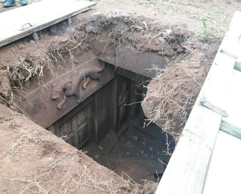 5日,泸县文物局馆员徐朝刚等相关的工作人员赶往现场,通过现场的石刻和墓志铭,有20多年文物工作经验的徐朝刚鉴定,确定是南宋时期的墓。“此墓内容完整,是仿宋朝木结构修建,墓门、武士、雕花等,都是宋朝人民真实生活的完美再现,墓穴两边构造几乎完全一样,鉴定为双室夫妻墓。”不过,古墓似乎已经被盗,无法确定墓主人。
