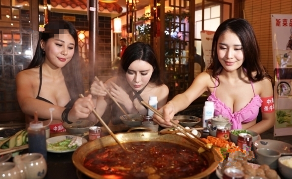原来,这家火锅店聘请三位身材火辣的模特成为其员工,她们身穿比基尼现场为顾客端菜、打油碟,为客户带来高品质的服务和享受。