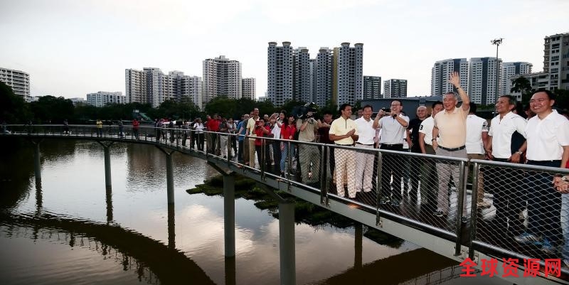 尽管水源供应是个严肃课题,李总理指出我国的蓄水池和集水区也可成为国人休闲的好去处。例如昨天开幕的盘沙池,周围建有数个绿化与休闲设施;池塘上方新设一条长约480米的木板步道,衔接池边的信佳—凯秀(Senja-Cashew)民众俱乐部、社区公园以及健乐中心。步道的部分路段离水面只有一两米距离,可让居民近距离欣赏池塘生态。