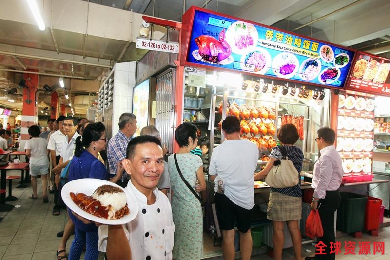 对新加坡人来说,牛车水大厦小贩中心是一个美食档口云集的地方。这里的常客对香港油鸡饭面并不陌生,也知道这是一摊即使过了午餐高峰时间去光顾,还是得大排长龙的档口,而大家排队买的,就是新币2元5角一盘的油鸡美食