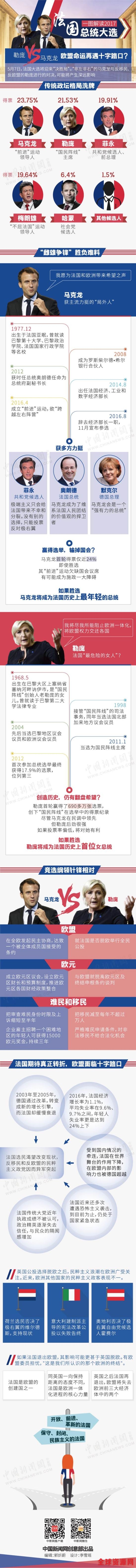 法国选民借此次大选重塑法国政治版图,而对欧盟持温和态度的马克龙与反移民、反欧盟的勒庞谁能胜出,对法国以外的世界也将产生深远影响。在英国公投选择脱欧、民粹主义浪潮席卷多国之后,法国大选将是欧盟未来的十字路口,中新网为您图解这次大选精彩内容: