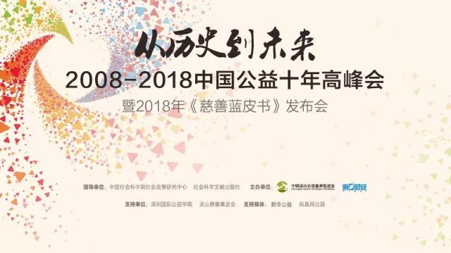 2018年6月20日,“2008-2019中国公益十年高峰会暨2018年《慈善蓝皮书》发布会”在山东曲阜尼山召开。来自公益慈善界、商界、学界、媒体界和政府等各界代表近百人齐聚一堂,以“从历史到未来”为主题,共同回顾中国公益慈善过去十年的发展历程,并深度探讨中国公益慈善下一个十年的发展方向与战略路径。