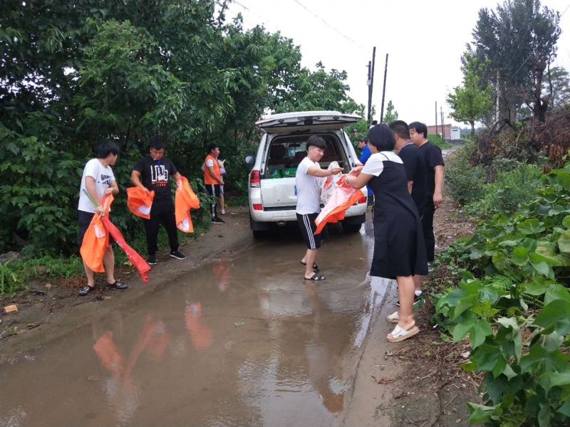 上午九点,志愿者们集结完毕,在会长杨立才、总管理周娟、二团长李雷、四团长杨立东、五团长王军的带领下冒雨对特困家庭进行救助帮扶。