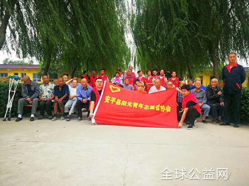 兵分两队:第一队志愿者们前往安平县子文养老院,对养老院66位老人,其中10人患有糖尿病。为每名老人发放了两块月饼、两个苹果、两个香蕉、两袋纯奶、为10位患有糖尿病的老人准备了无糖月饼。由协会圆梦之声艺术团为老人们组织了一场别开生面的文艺节目,老人们在台下看的不亦乐乎。同时为有需求的老人开展了理发与剪指甲。
