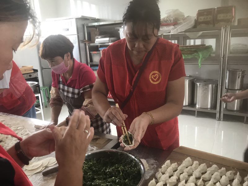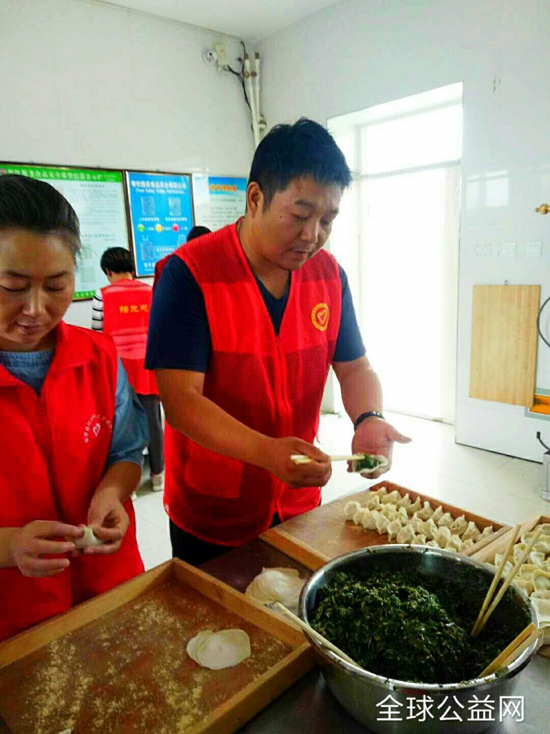 第二队志愿者们前往马店养老院,对养老院52位老人,其中2人患有糖尿病。为每名老人发放了两块月饼、两个苹果、两个香蕉、两袋纯奶、为2位患有糖尿病的老人准备了无糖月饼。紧接着大家一同来到了厨房,开始了包饺子活动,有和面的、调馅的、赶皮的、包饺子的最后将适口的饺子一一为每位老人盛到了碗里,看到老人们的笑容,我们都笑了。