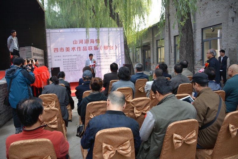 全球资源网爱心公益频道河北沙河通讯站(路军社 宋卫国)讯:为了弘扬中华传统文化,展示燕赵艺术风采。2018年10月16日,“山河湖海情”四市美术作品联展在邢台736艺术区——古顺酒窖艺术展览馆隆重开展。邢台市人大常委会副主任周世伟,邢台市政协副主席刘勇,邢台市委组织部副部长张占春,中共邢台市委宣传部副部长霍会敏,邢台市文学艺术界联合会主席睢金山,河北省美术家协会副主席、廊坊市美术家协会主席张玉华,邢台市美术家协会主席姚卫国出席开幕式。入展作者、邢台市美术家协会会员以及来自廊坊、沧州、衡水的特邀美术家代表及社会各界美术爱好者、媒体记者等150多人参加了本次活动。