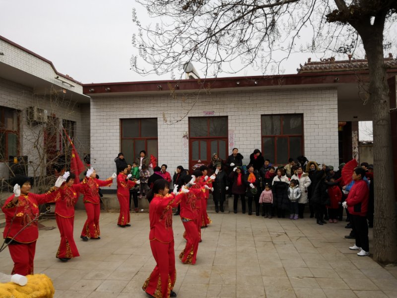 每天晚上和演员们排练节目到深夜。不怕苦和累 ,爱心奉献,任劳任怨。幼儿园赞助了舞台、音响设备、背景幕布、桌椅板凳。全体演员们都是地地道道的农民,他们自购服装和化妆用品,不分白天黑夜,冒着严寒,刻苦自编自导自演排练了舞蹈、快板、独唱、三句半等28个接地气的精彩的文艺节目,受到了全村群众的交口称赞,并在当地三里五乡引起了强烈的轰动,纷纷赞扬这场农民自办的春节联欢晚会。