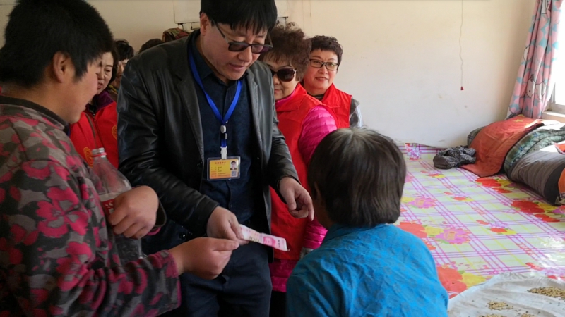 平方子乡三道河村的王林,一家三口。儿子王红明15岁,重度残疾、聋哑、智力低下,母亲李玉双79岁,股骨头坏死病已10年,靠坐轮椅行走,丧失劳动能力,没有经济来源,生活十分艰难。