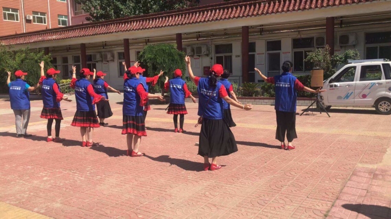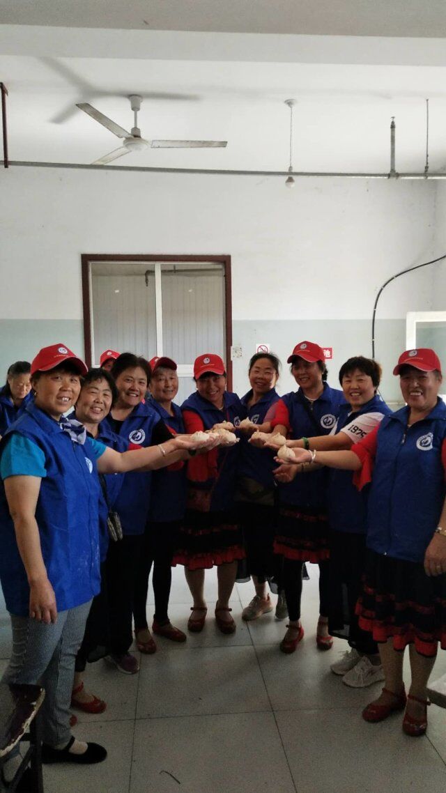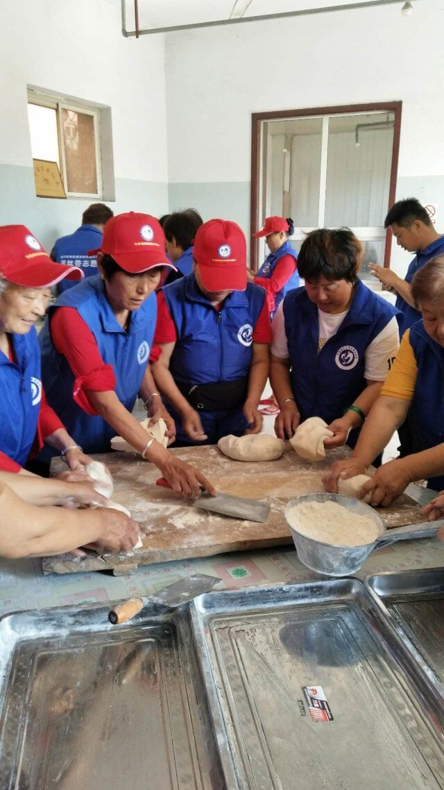 由蓝丝带志愿者协会会长艾红桥、副会长艾艳辉带领一组人员为老人们包包子,打扫卫生;理事会长杨宝洋负责全场活动主持,项目部部长张俊华负责文艺节目演出事项以及给老人们分发水果等公益活动