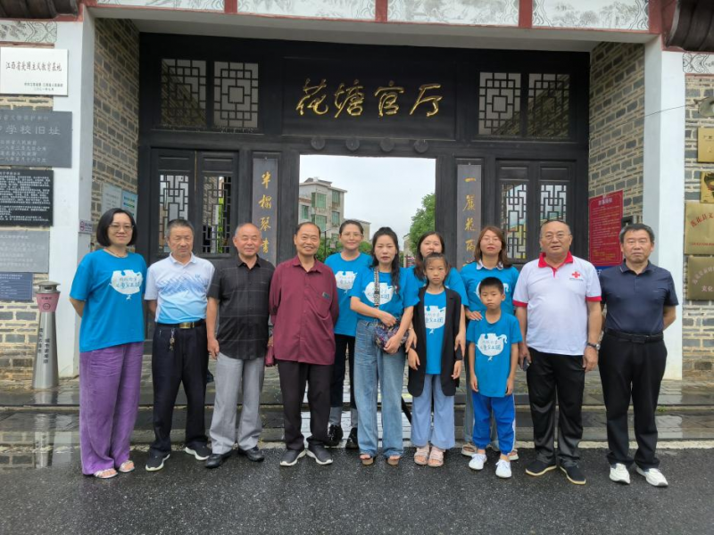活动尾声,一行人冒雨来到莲花县诗词楹联协会。协会负责人带领大家参观的花塘官厅,更让孩子们穿越了历史的长廊。在协会负责人的引导下,他们触摸着百年砖墙上的雕花,聆听着“一门九进士”的科举佳话。当看到官厅天井中承接雨水的石缸时,小宇突然喊道:“这和我们今天采蜜时接雨水的桶一样,都是收集自然的馈赠!”这个充满童趣的联想,让古建筑保护的理念以更生动的方式植入心田。在官厅正堂,志愿者组织孩子们看先人的事迹,雨点敲打屋面的声音,与笔尖记录划过纸面的沙沙声,共同谱写了一曲文化传承的协奏曲。