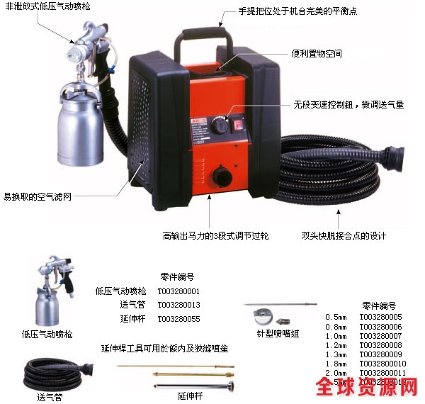 本公司T328 HVLP涡轮喷漆机搭载工业用等级3段调节式涡轮,透过1400w马力驱动,达到专业级之喷漆需求。可调整送气量之大小,最大值可达2800 L/min,加上0.41 bar的气压值,能迅速完成大面积的喷涂。特制非泄放式喷枪可控制喷雾大小,制造出优异的雾状喷涂效果。我们也考虑到便利性。机台顶部设置了存放额外的喷嘴及针型喷嘴组。空气滤网容易更换。手提把位处于机台完美的平衡点, 快脱式管子连接点的设计, 方便送风管接合喷枪及机台。 |