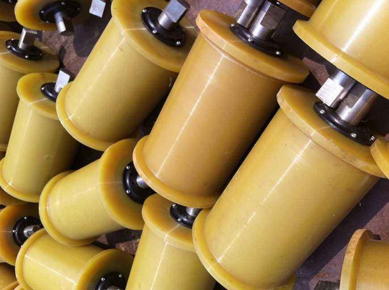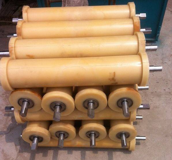铸钢地滚与聚氨酯地滚:前者主要是用钢板浇注而成,工艺相对简单,价格较后者便宜,不足之处是较沉,且容易对钢丝绳造成磨损。后者是外面全包一层聚氨脂,聚氨酯较软,与钢丝绳接触不会造成什么磨损。工艺复杂,耐磨,防腐,抗冲击。