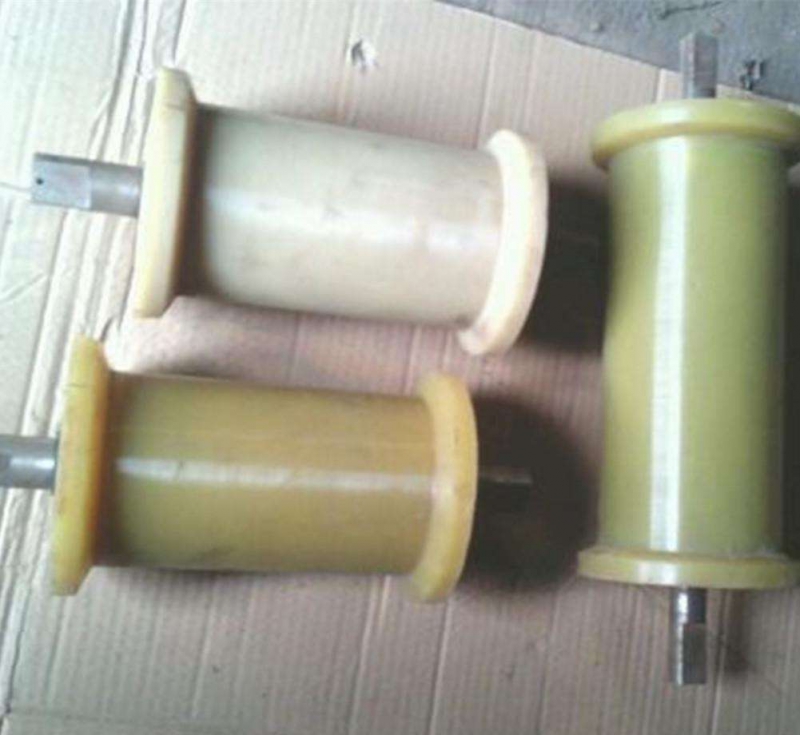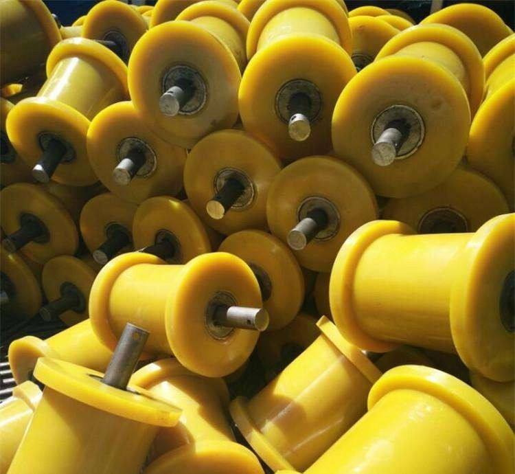 尼龙地滚轮:尼龙地滚相对于金属地滚具有重量轻、超强耐磨、保护钢丝绳、使用寿命长,耐腐蚀助燃、抗静电、抗老化、维修方便等特点外更成倍的延长了钢丝绳的使用寿命,它相对于聚胺脂材质的地滚除了耐磨系数相等外,更具有抗静电助燃性能。它本身具有的韧性更是硬木材质地滚的十几倍,所以是目前矿山斜井开采的理想产品。
