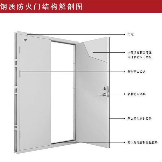 钢质防火门为用钢质材料制作门框、门扇骨架和门扇面板,门扇内若填充材料,则填充对人体无害的防火隔热材料,并配以防火五金配件所组成的具有耐火性能的门,在高层民用建筑设计防火规范中将防火门定为甲、乙、丙三级,并对其耐火极限作了规定,甲门不得低于1.5小时,乙门不得低于1.0小时,丙门不得低于0.5小时.